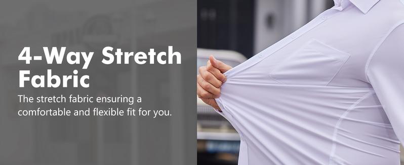 Four-Way Stretch Fabric: This shirt is made from four-way stretch fabric, providing maximum comfort and freedom of movement while maintaining a polished appearance. Perfect for active lifestyles!