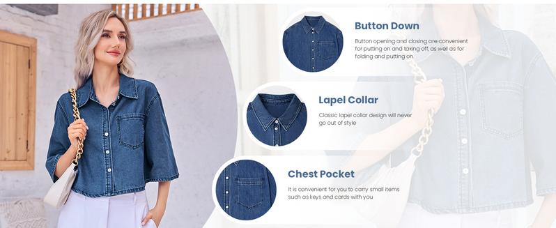 Women button down crop shirt is made of high quality fabric, super soft, durable and lightweight