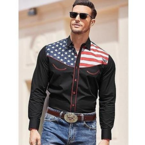 5 reviews for Men’S Casual American Flag Button down Shirts Slim Fit Long Sleeve Shirt Menswear Apparel Costume Cowboy Costume Cowboy Longsleeves Tops
