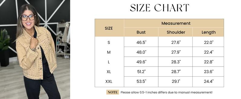 Tanming Women’s Long Sleeve Rivet Studded Denim Jacket Classic Distressed Button Down Jean Jacket with Pockets