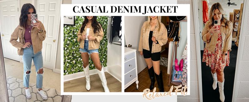 This loose-fit denim jacket features a classic turn-down collar and a relaxed silhouette that brings effortless cool to your wardrobe. Inspired by western fashion, it’s the perfect statement piece for Nashville trips, rodeo events, or anyone looking to channel a bold cowgirl vibe.