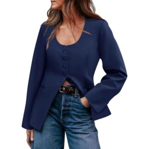- Trendy Scoop Neck: The Womens Casual Blazer features a modern scoop neck and a fitted waist, making it a versatile piece for both business and casual occasions. Comfort tailored to enhance your silhouette