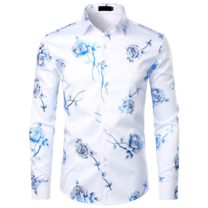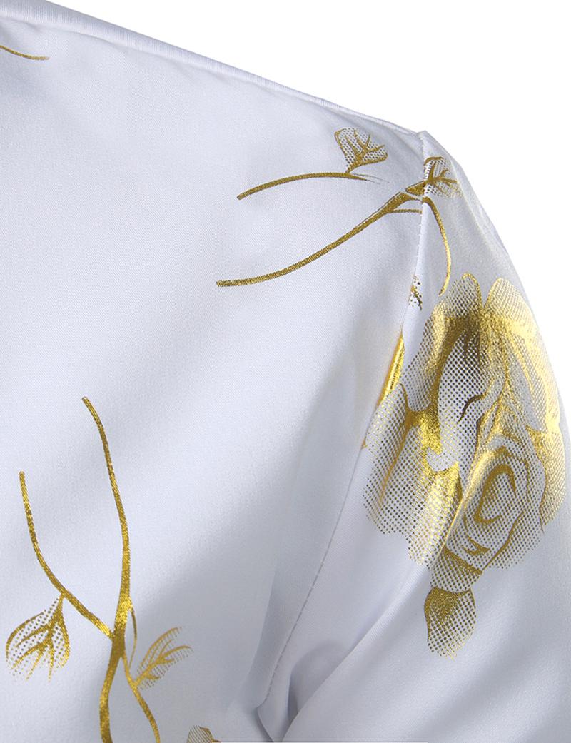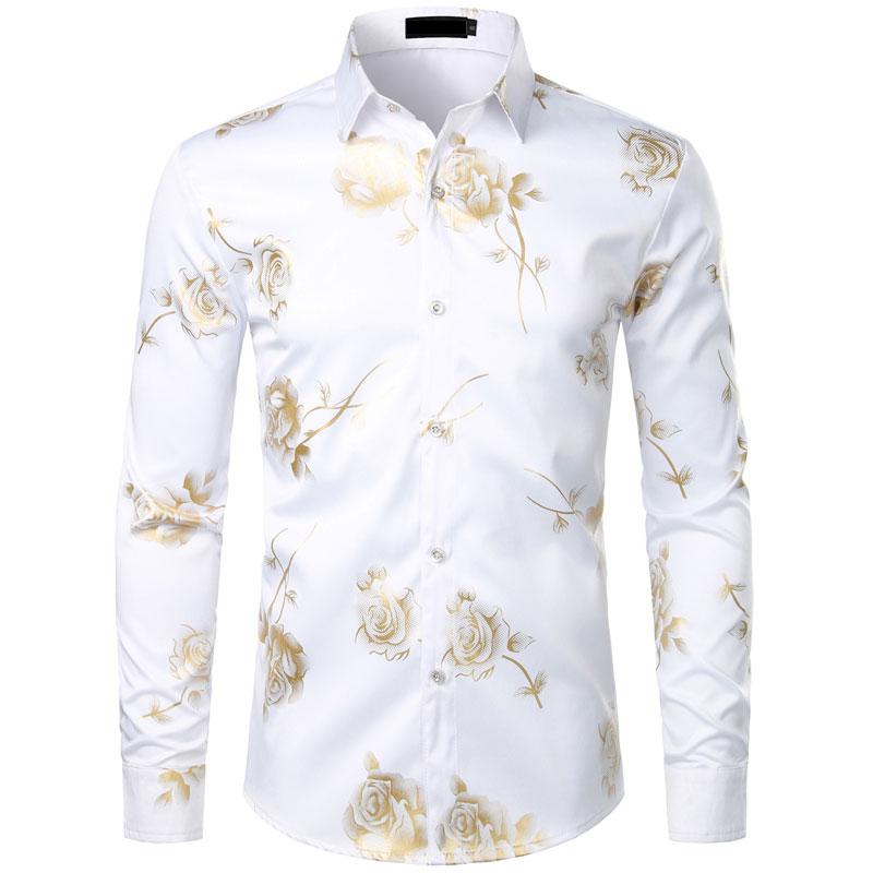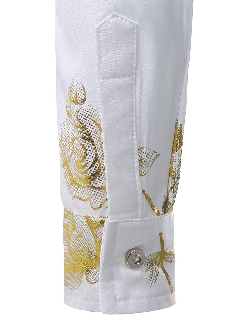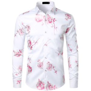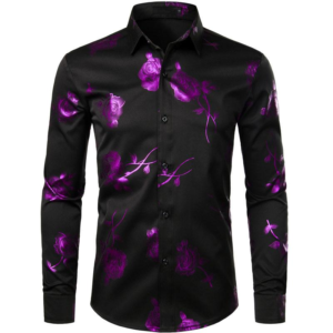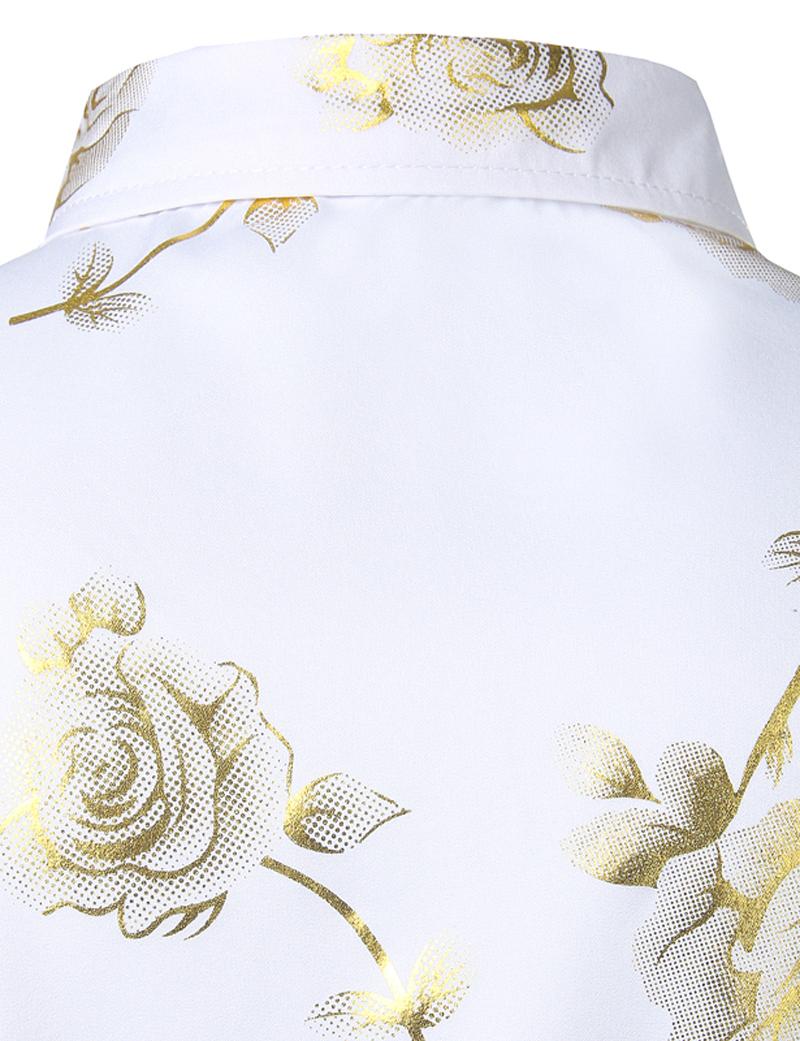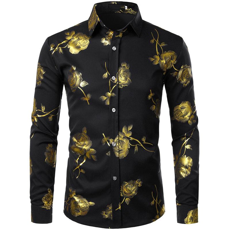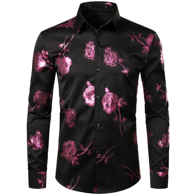 ZEROYAA Mens Hipster 3D Golden Rose Floral Printed Slim Fit Long Sleeve Button down Dress Shirts Casual Elegant Classy Menswear Fourth July Shirt Stylish Fabric Button Shirt Top Black Pink
