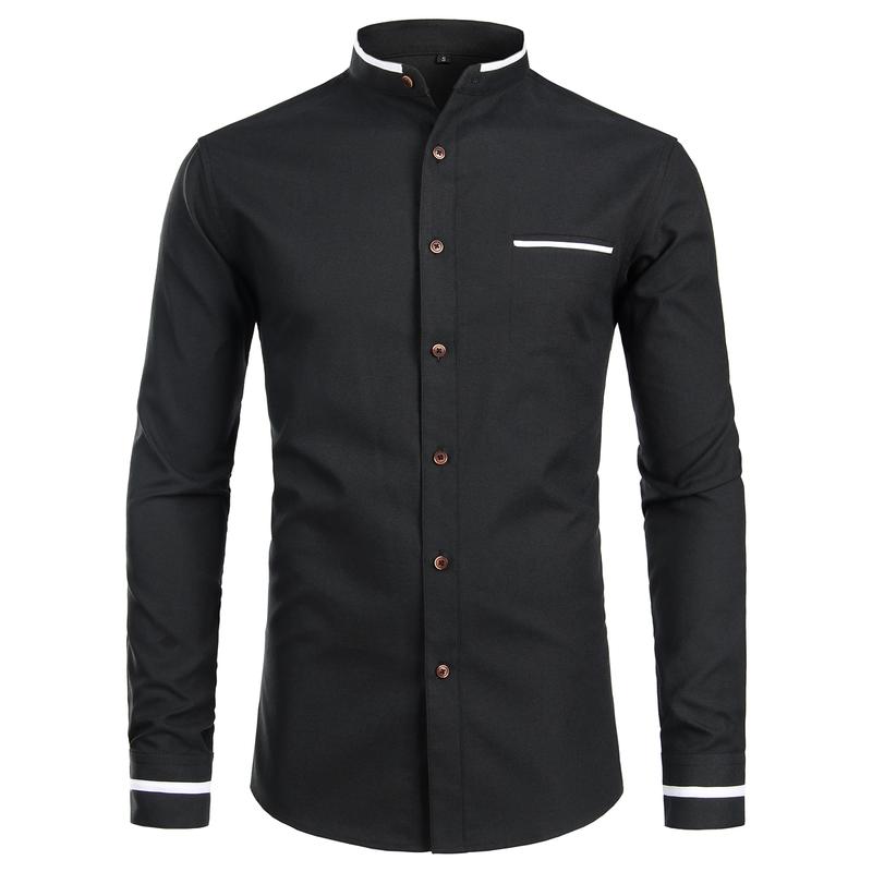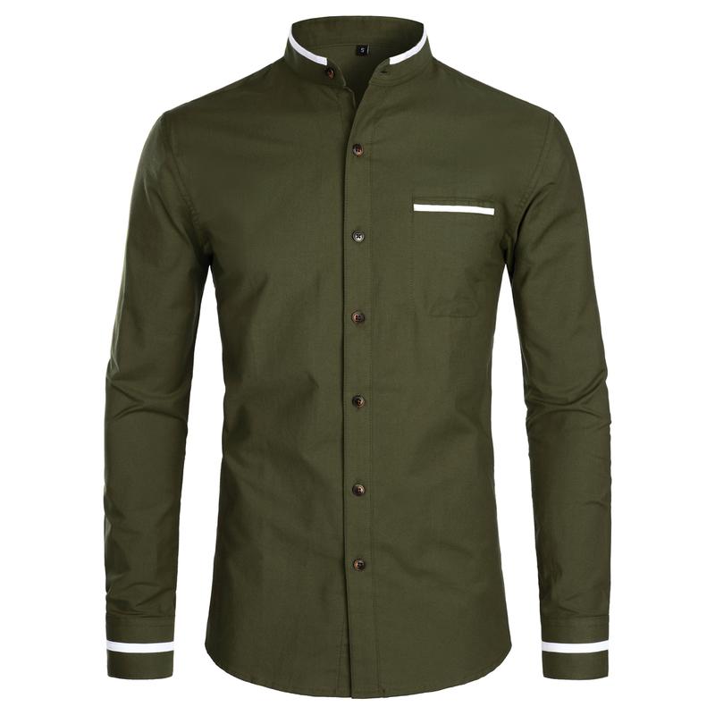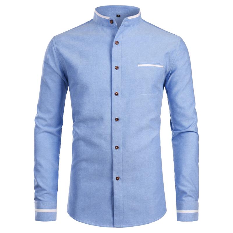 ZEROYAA Mens Hipster Mandarin Collar Slim Fit Long Sleeve Casual Button down Oxford Dress Shirt with Pocket Sublime Shirt Shirt Summer Outfits Men